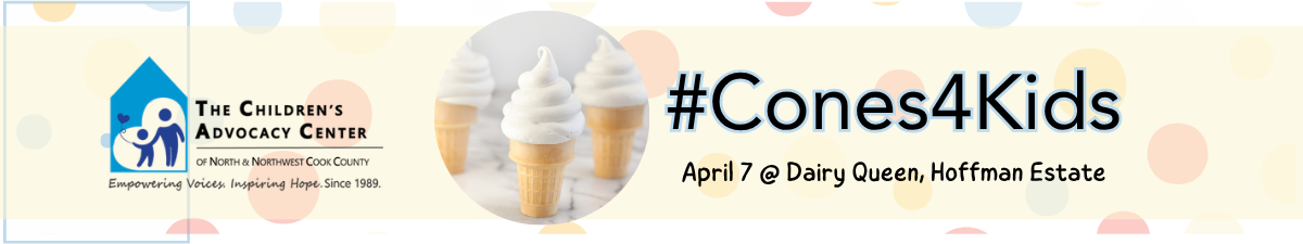 April is National Child Abuse Prevention Month. Join Children's Advocacy Center of North and Northwest Cook County (CAC) friends at Dairy Queen of Hoffman Estates on Tuesday, April 7, for #Cones4Kids. Your sweet treat purchase will be counted toward the day's sales, and Dairy Queen will donate a portion back to CAC to support our work in the community with young survivors of abuse and violence.
